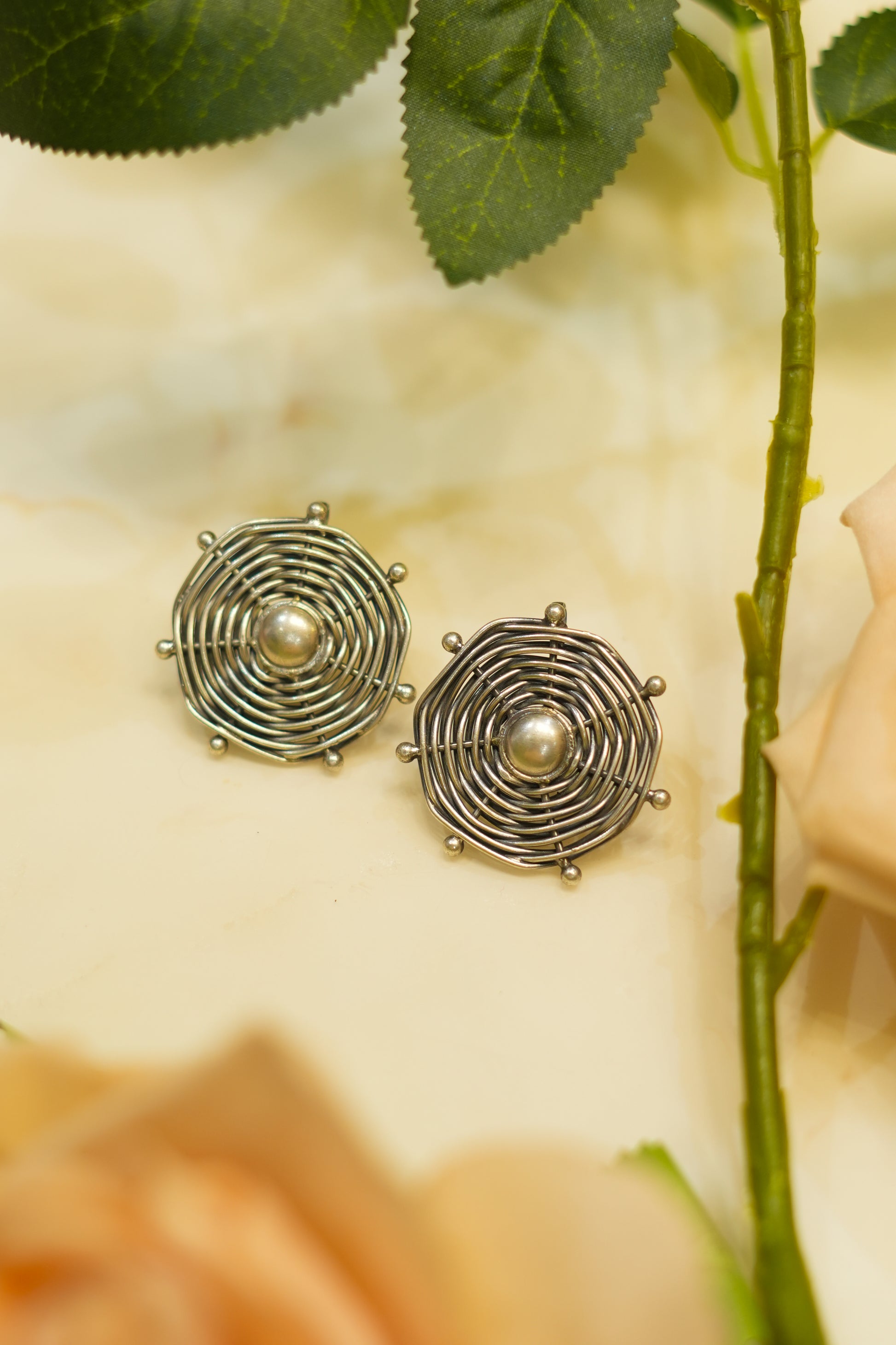 It feature a striking spiral wire design that’s modern, bold, and effortlessly stylish. The circular pattern creates a standout look without being too heavy, making them a perfect pick for those who love statement pieces with a clean, minimal vibe.
