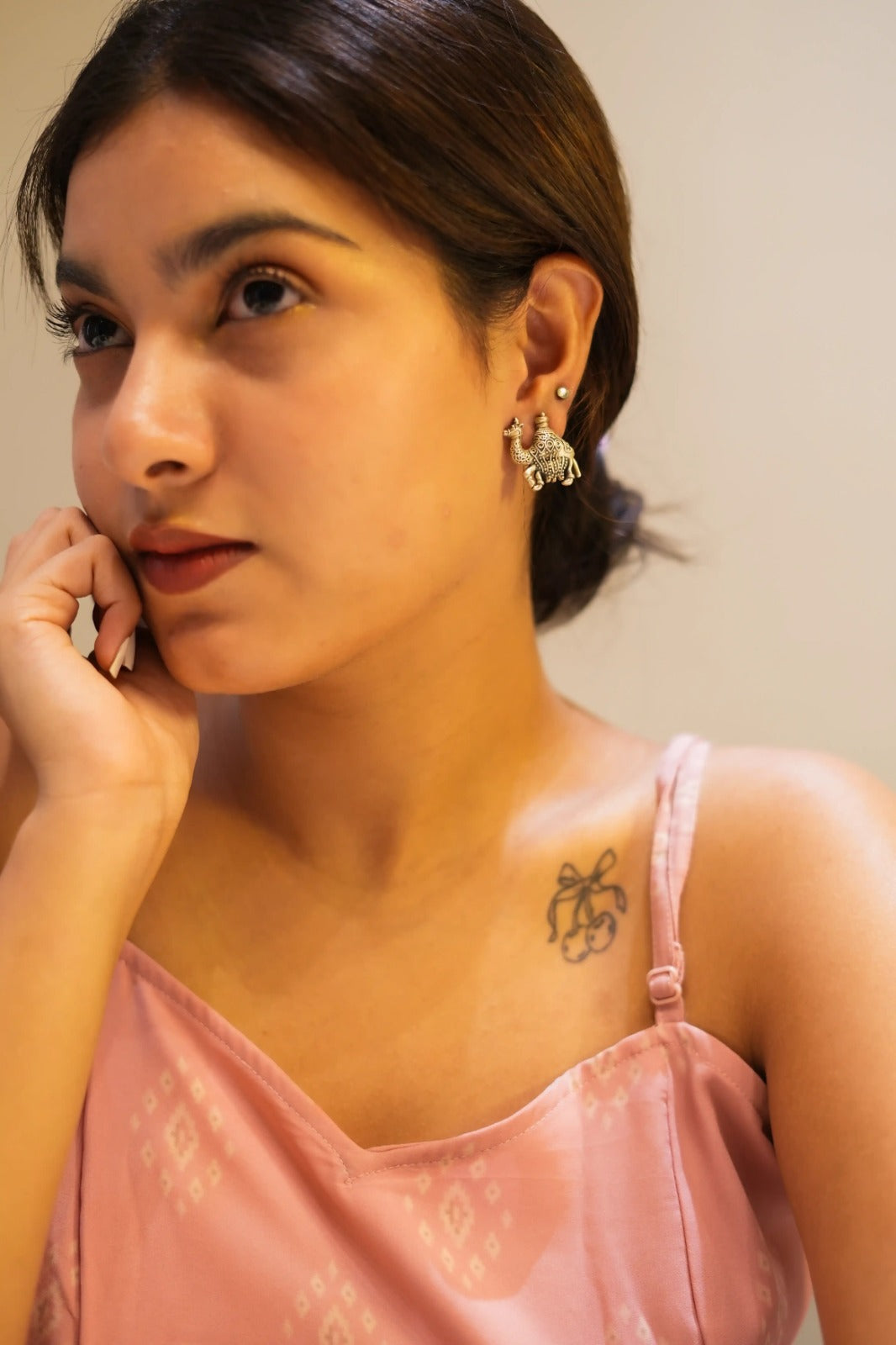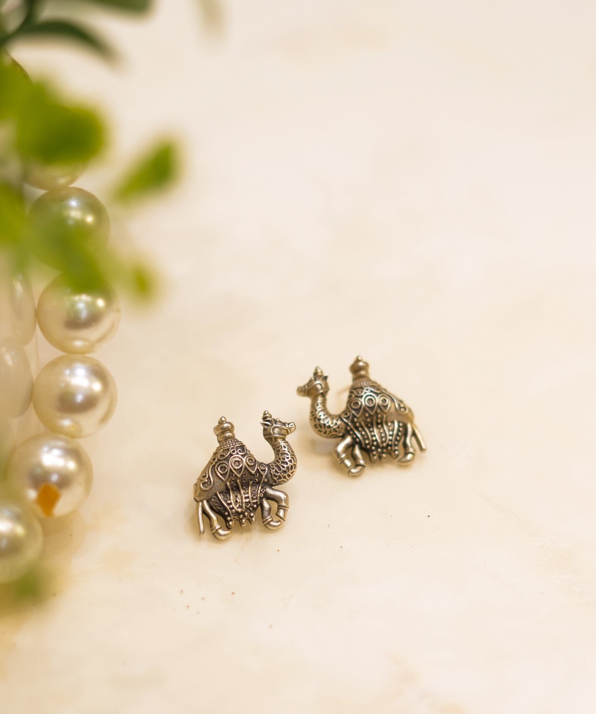 Aadya Desert Camel Studs are a playful tribute to the charm of desert journeys and traditional artistry. Handcrafted in 925 silver, these unique camel-shaped earrings bring a touch of culture and whimsy to your look. Lightweight and full of character, they’re perfect for adding a little story to your everyday or festive outfits.