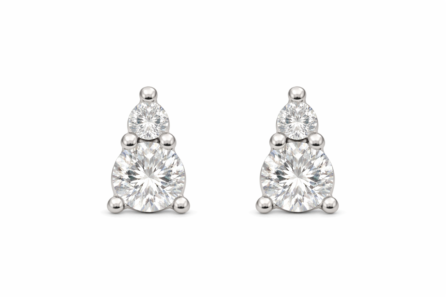 Duo Spark Studs feature a refined two-diamond design with a delicate small stone above a radiant medium stone. Minimal yet eye-catching, these studs add effortless elegance to your everyday look.