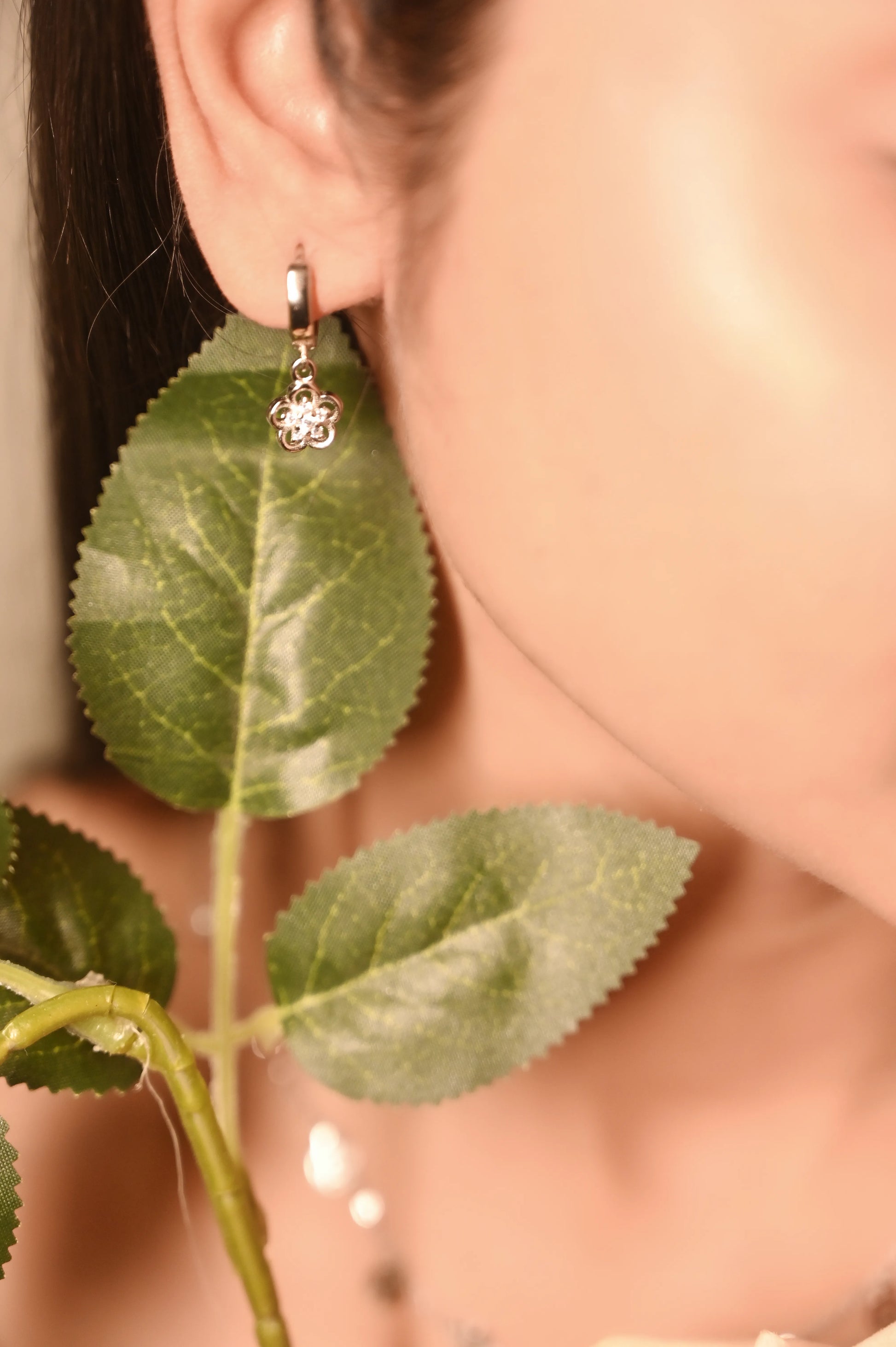 Silver Delicate Floral Hoops